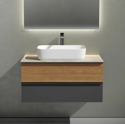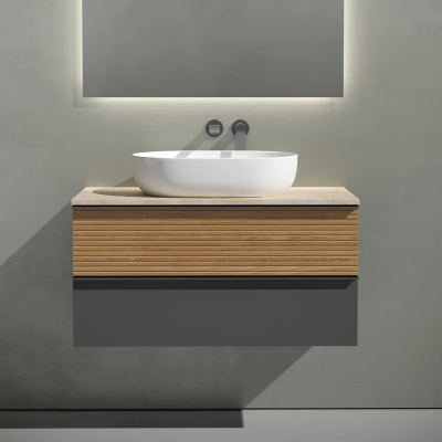Тумба с раковиной Sancos Delta 100 см, дуб красный, графит, столешница бежева...