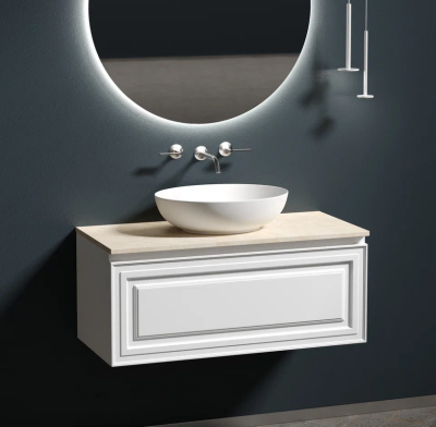 Тумба с раковиной Sancos Snob R 100 см, bianco, столешница бежевая, раковина ...