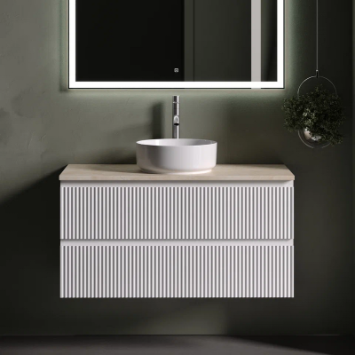 Тумба с раковиной Sancos Snob T 100 см, bianco, столешница бежевая, раковина ...