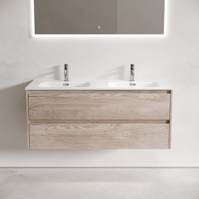 Тумба с раковиной Sancos Libra Floor 120 двойная белая раковина CN7004, дуб г...