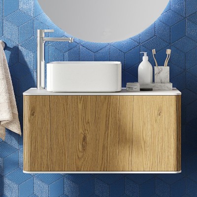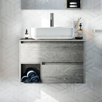 Тумба с раковиной STWORKI Ноттвиль 80 дуб верона, с отверстием под смеситель