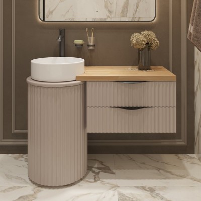 Тумба с раковиной STWORKI Ноттвиль 80 бежевый шелк, с отверстием под смеситель