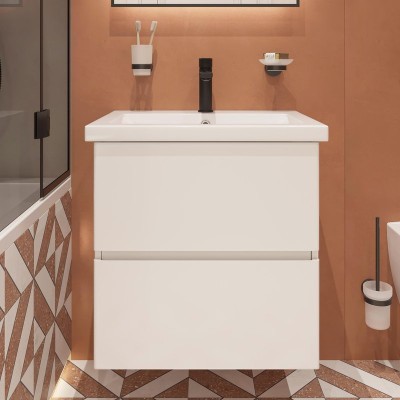Тумба с раковиной STWORKI Ноттвиль 60 белая, с отверстием под смеситель
