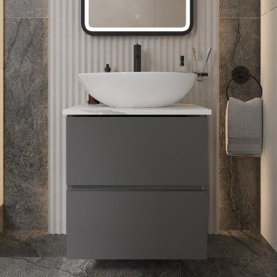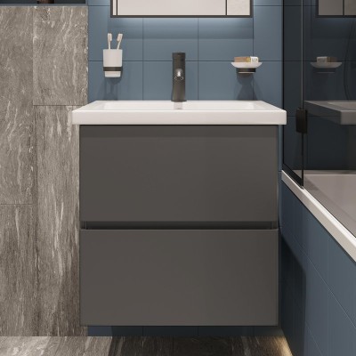 Тумба с раковиной STWORKI Колдинг 60 антрацит, с раковиной Moduo 55 Leaf, сто...
