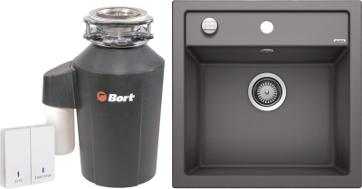 Комплект Мойка Blanco Dalago 5 антрацит + Измельчитель Bort Alligator Green