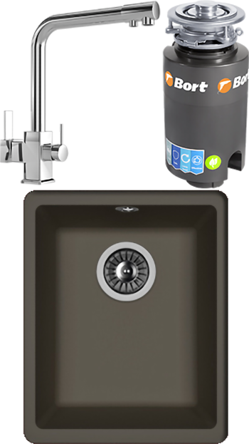 Комплект Мойка Florentina Вега 300 грей + Смеситель Дельта FL грей + Измельчи...