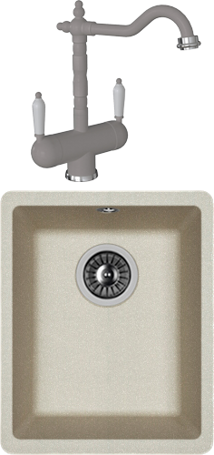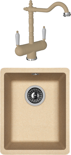 Комплект Мойка Florentina Вега 300 бежевый + Смеситель Гамма FL бежевый