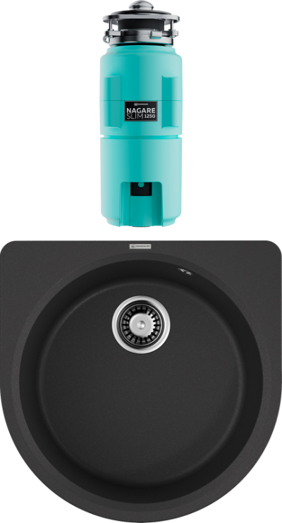 Комплект Мойка Omoikiri Bosen 38-U-BL черная + Измельчитель Nagare slim 500