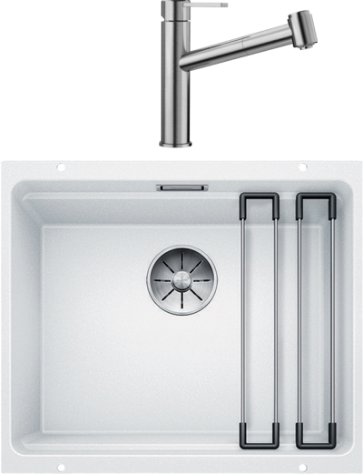 Комплект Мойка Blanco Metra 45S Compact 519576 белая + Смеситель Ambis-S 523119