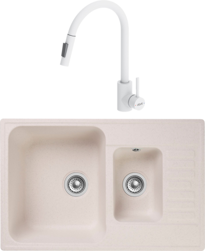 Комплект Мойка кухонная GranFest Quarz Z 21K белая + Смеситель для кухни Dor...