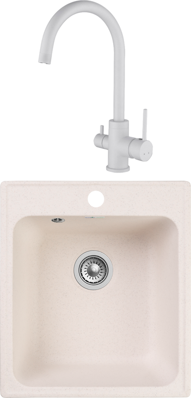 Комплект Мойка кухонная GranFest Quarz Z17 белый + Смеситель для кухни Kaise...