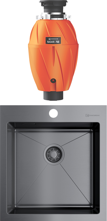 Комплект Мойка Omoikiri Akisame 46-GM вороненая сталь + Измельчитель Nagare 750