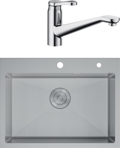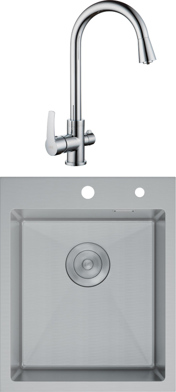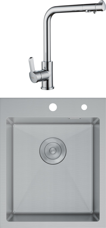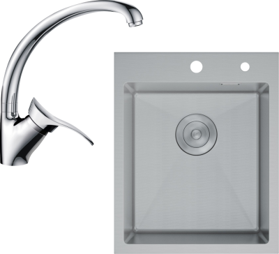 Комплект Мойка D&K DKS415004 сатин + Смеситель Rhein Bach