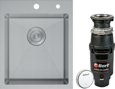Комплект Мойка D&K DKS415004 сатин + Измельчитель Bort Master Eco Control