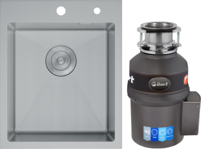 Комплект Мойка D&K DKS415004 сатин + Измельчитель Bort Titan Extra