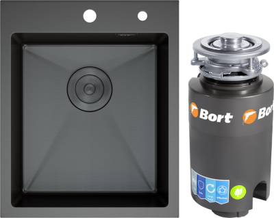 Комплект Мойка D&K DKS415006 графит + Измельчитель Bort Titan Max Power