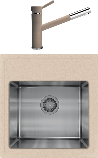 Комплект Мойка Florentina Комби 480 песочная + Смеситель Фита FL песочный