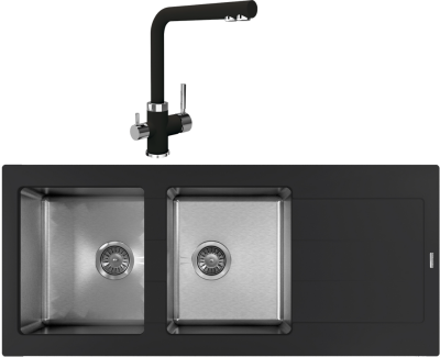 Комплект Мойка Florentina Комби 1160 антрацит + Смеситель Арес FL антрацит + ...