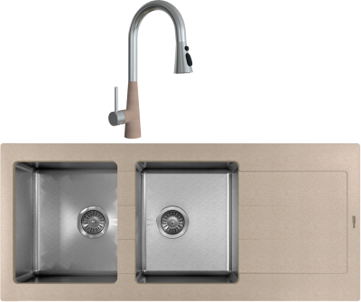 Комплект Мойка Florentina Комби 1160 песочная + Смеситель Фабио FL песочный