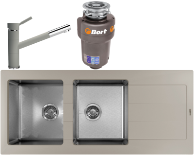 Комплект Мойка Florentina Комби 1160 грей + Измельчитель Bone Crusher BC 610-AS