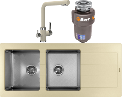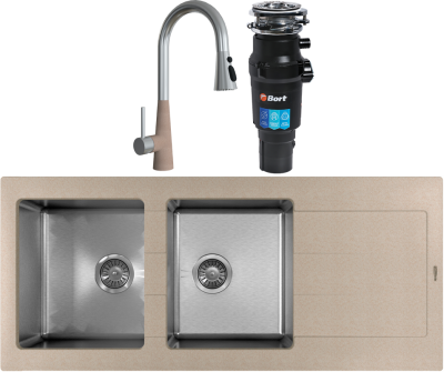 Комплект Мойка Florentina Комби 1160 песочная + Измельчитель Bone Crusher BC ...