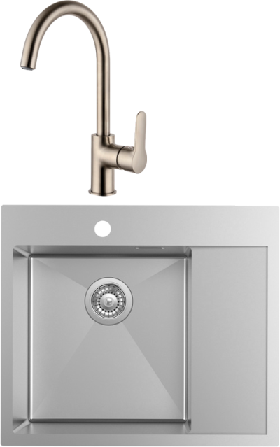 Комплект Мойка IDDIS Haze HAZ59SLi77 L, сатин + Смеситель Cuba CUBBNFJi05 сатин