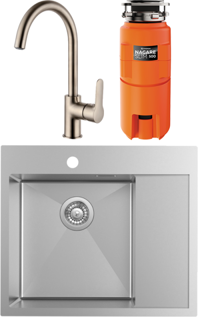 Комплект Мойка IDDIS Mate + Смеситель MEGA Life MG-TK06 хром + Измельчитель B...