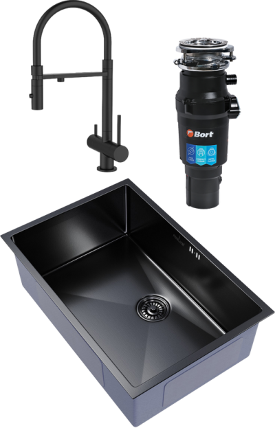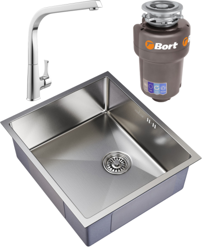 Комплект Мойка Mixline 548568 сатин + Смеситель MEGA Mega + Измельчитель Bort...