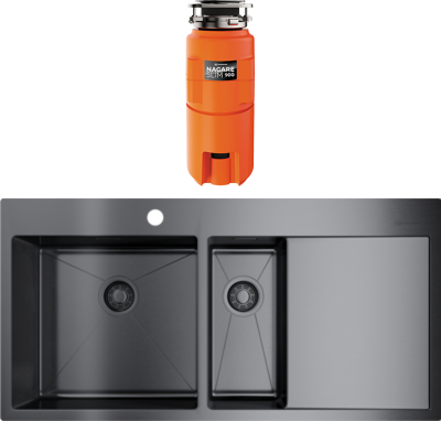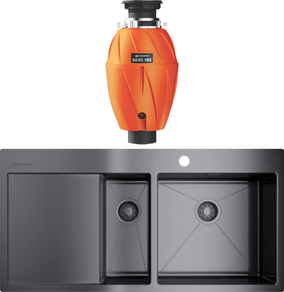 Комплект Мойка Omoikiri Akisame 100-2-GM-L вороненая сталь + Измельчитель Nag...
