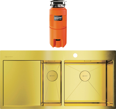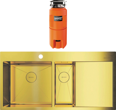 Комплект Мойка Omoikiri Akisame 100-2 R, светлое золото + Измельчитель Nagare...
