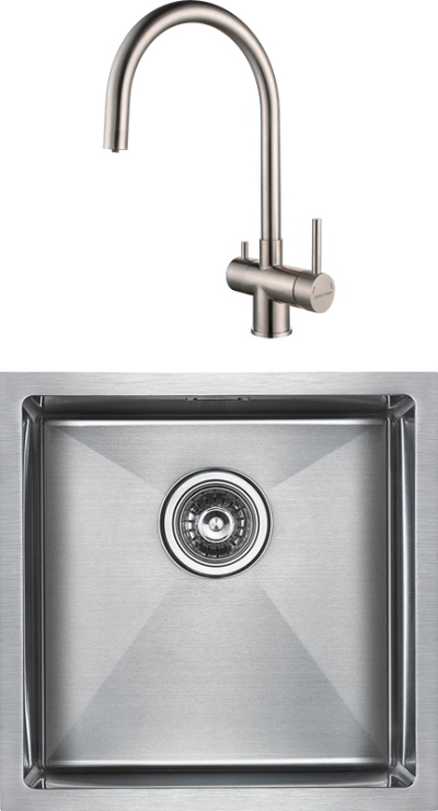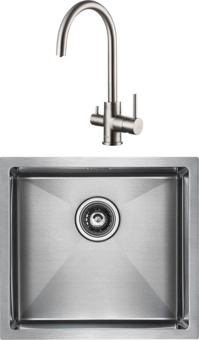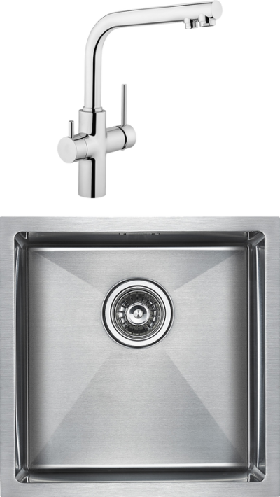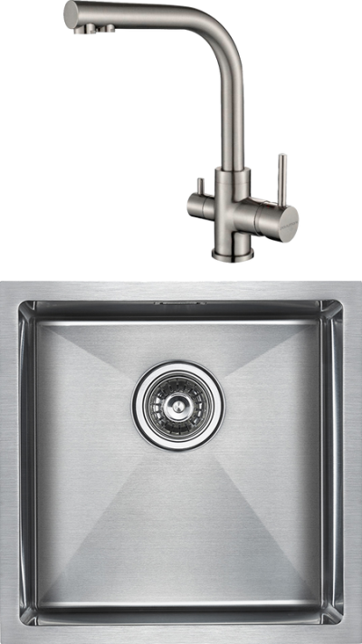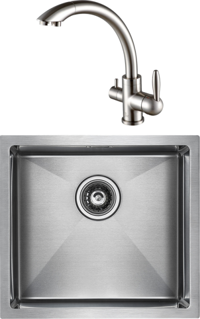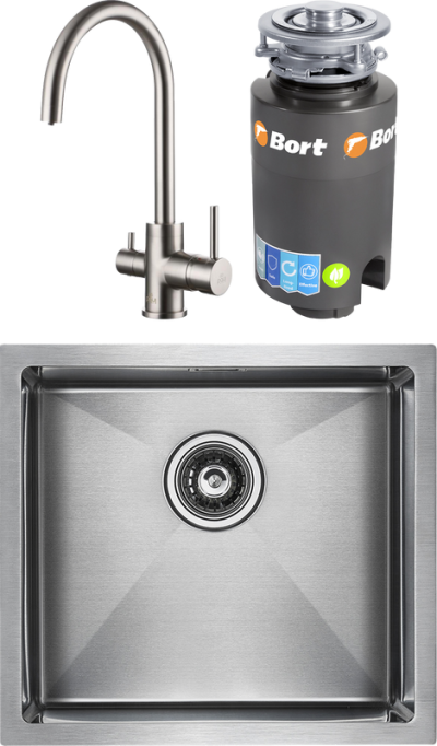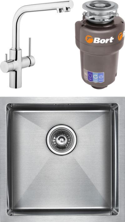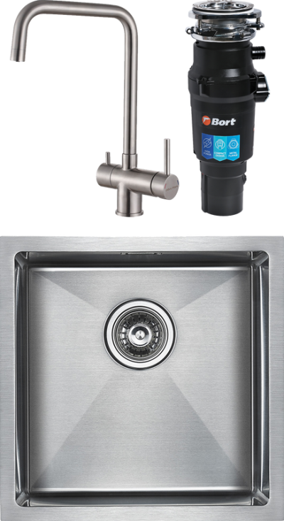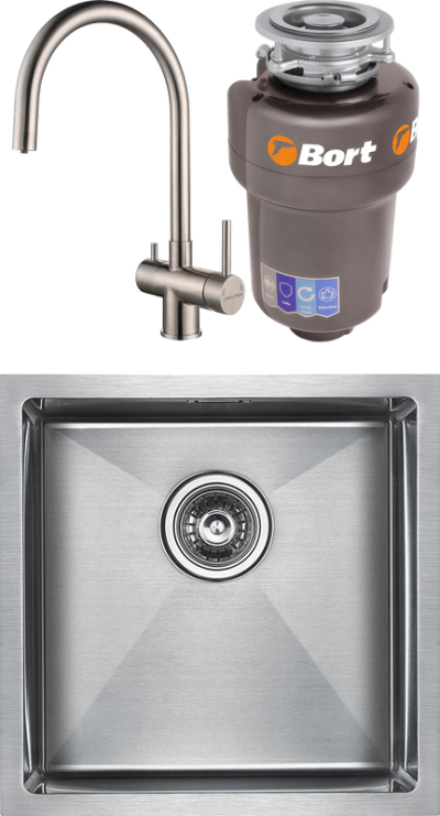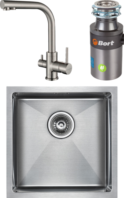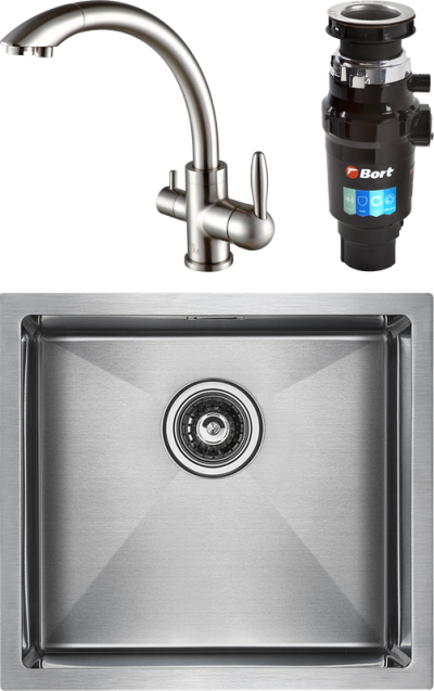 Комплект Мойка Paulmark Aller PM904444-BS брашированная нержавеющая сталь + И...