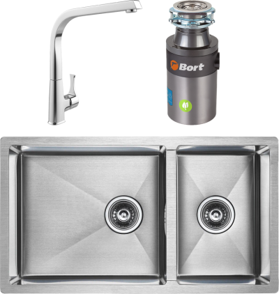 Комплект Мойка Paulmark Aller PM807444-BS брашированная нержавеющая сталь + И...