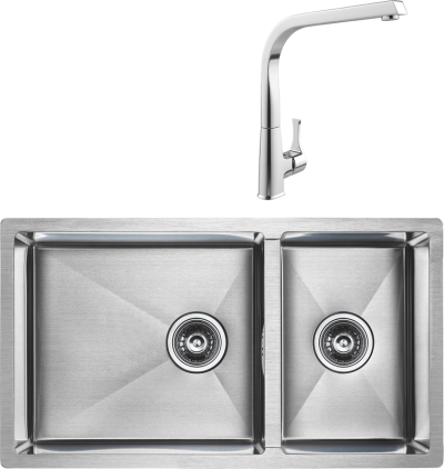 Комплект Мойка Paulmark Aller PM804844-BS брашированная нержавеющая сталь + И...