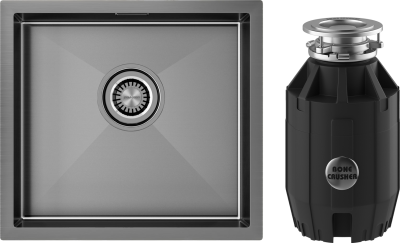 Комплект Мойка Paulmark Aller PM804844-GM вороненая сталь + Измельчитель Bone...