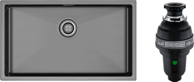 Комплект Мойка Paulmark Aller PM807444-GM вороненая сталь + Измельчитель Bone...