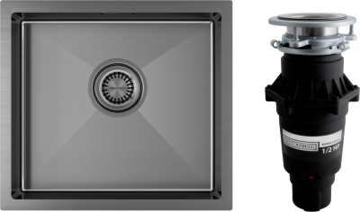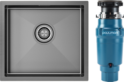 Комплект Мойка Paulmark Aller PM904444-GM вороненая сталь + Измельчитель Intenso