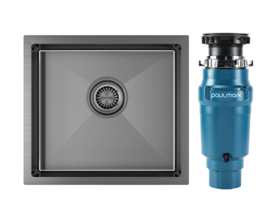 Комплект Мойка Paulmark Aller PM904444-GM вороненая сталь + Измельчитель Bone...
