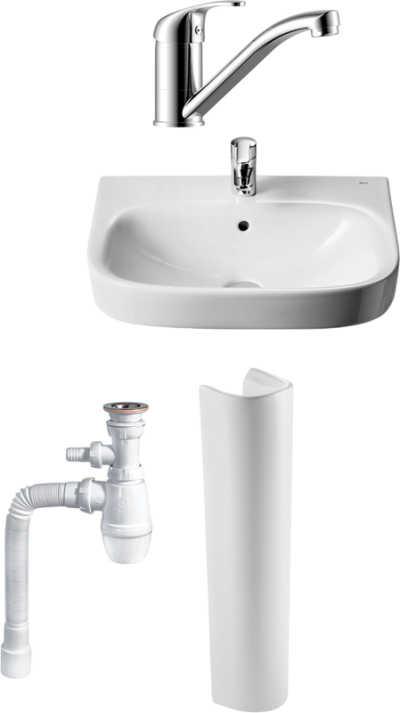 Комплект Раковина Roca Debba 55x44 + Пьедестал + Смеситель Rossinka Y + Сифон...