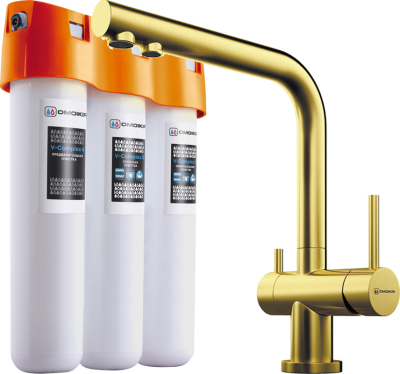 Комплект Смеситель Omoikiri Nagano PVD-G светлое золото + Фильтр Pure Drop Lite