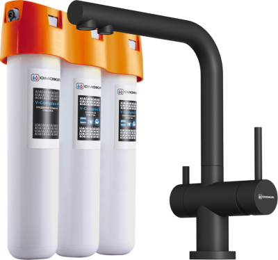Комплект Смеситель Omoikiri Nagano P-BL черный + Фильтр Pure Drop Lite