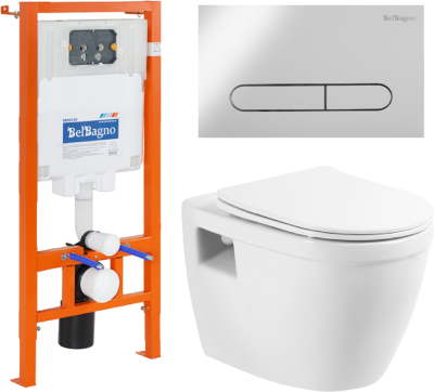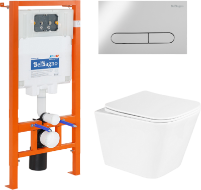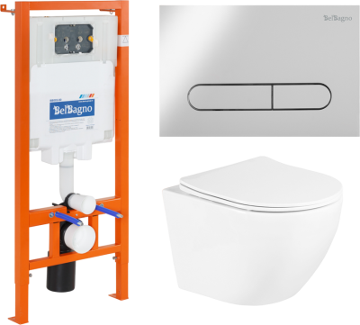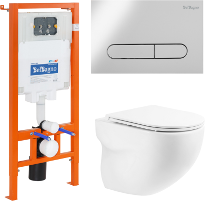 Комплект Унитаз подвесной BelBagno Loto BB070CHR/SC безободковый + Инсталляци...