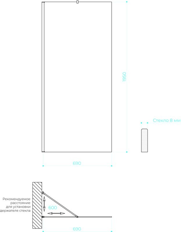 - Комплектация: Душевая перегородка Maybahglass MGD-702-6ш, 69 см, профиль черный, стекло бронза