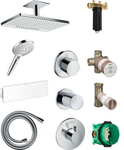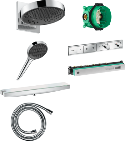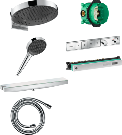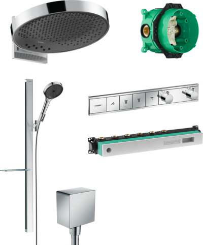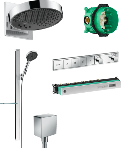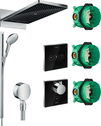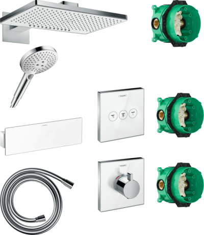 - Комплектация: Скрытая часть Hansgrohe Ibox Universal 01800180; Скрытая часть Hansgrohe Rainmaker Select 460 24010180; Скрытая часть Hansgrohe 15973180 со шпинделем; Скрытая часть Hansgrohe Quattro 15930180; Переключатель потоков Hansgrohe Trio/quattro S Trio/Quattro S
