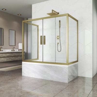 - Комплектация: Душевой уголок Veconi Premium Trento PTC-SP-50G, 150х80 см, профиль брашированное золото, стекло прозрачное