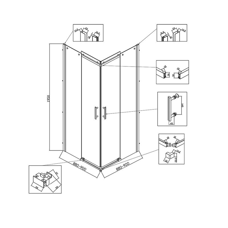 - Комплектация: Душевой уголок Veconi Rovigo RV-50B, 90х90 см, профиль матовый черный, стекло прозрачное