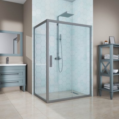 - Комплектация: Душевой уголок Vincea Slim Soft VSR-1SS8015CLGM, 150х80, профиль вороненая сталь, стекло прозрачное