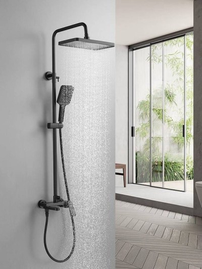 - Дополнительное оснащение: {душевой шланг;душевая лейка;держатель для душа;кронштейн для верхнего душа;переключатель потоков}