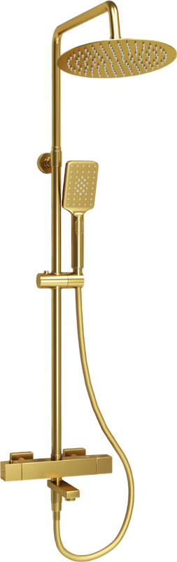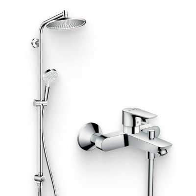 - Состав комплекта: {Смеситель для ванны с душем;Верхний душ;Душевой гарнитур;Излив;Шланговое подключение}