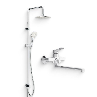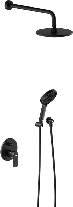 - Состав комплекта: {Смеситель для душа;Верхний душ;Душевой гарнитур;Шланговое подключение}
