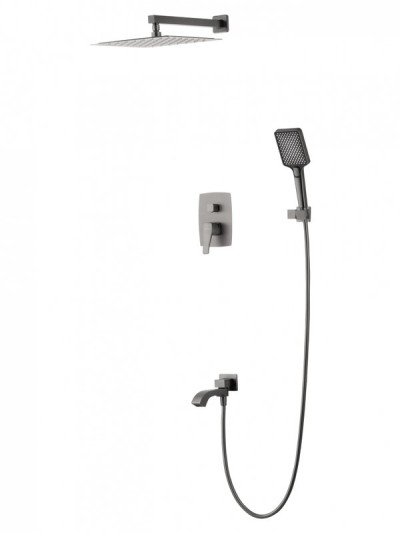 - Состав комплекта: {Смеситель для ванны с душем;Верхний душ;Душевой гарнитур;Излив;Шланговое подключение}